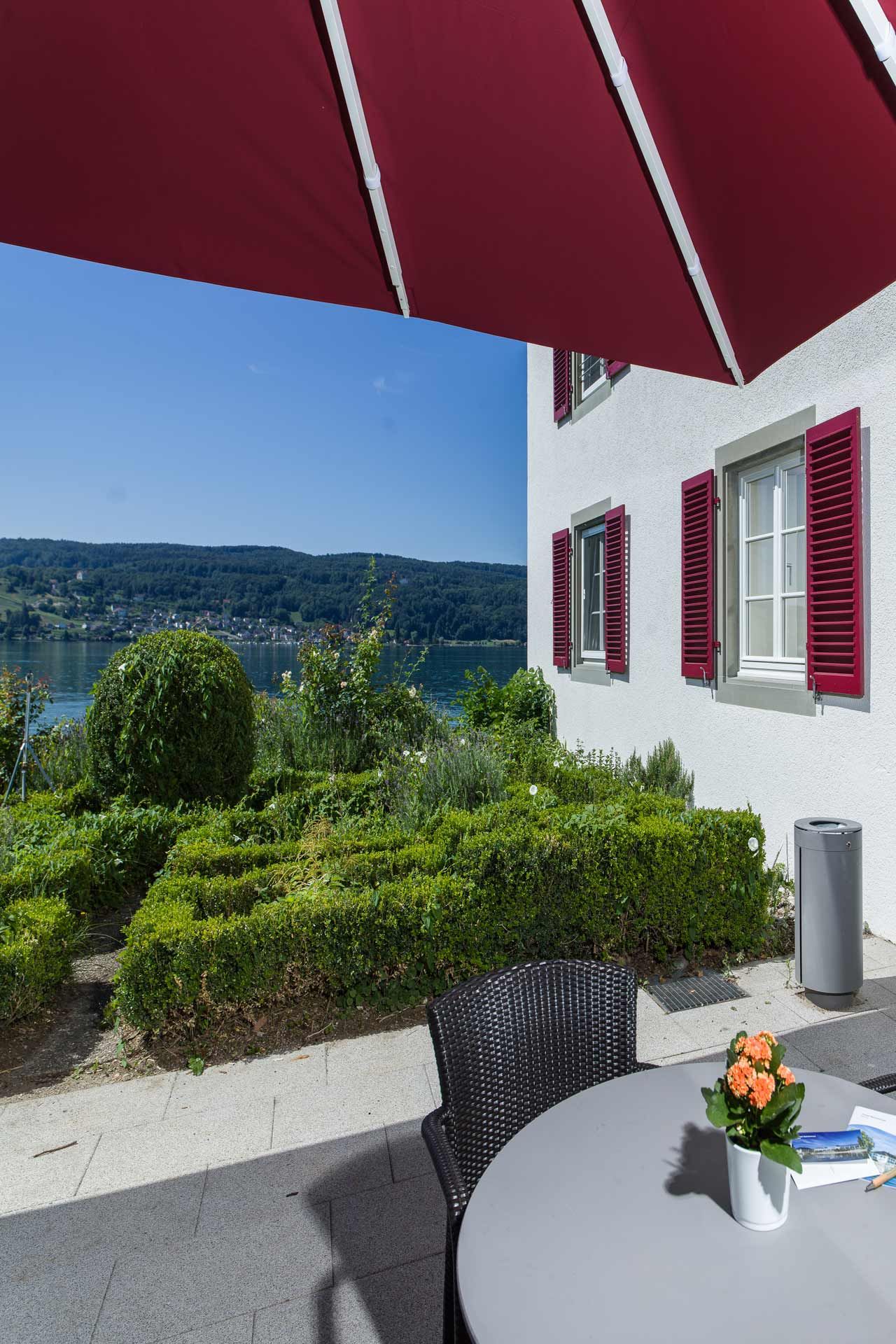 Eingebettet in eine blühende Landschaft aus Weinreben, Kräuter- und Gemüsegärten umgeben, befindet sich unser Haus Insel Reichenau in einzigartiger Lage direkt am Bodensee.