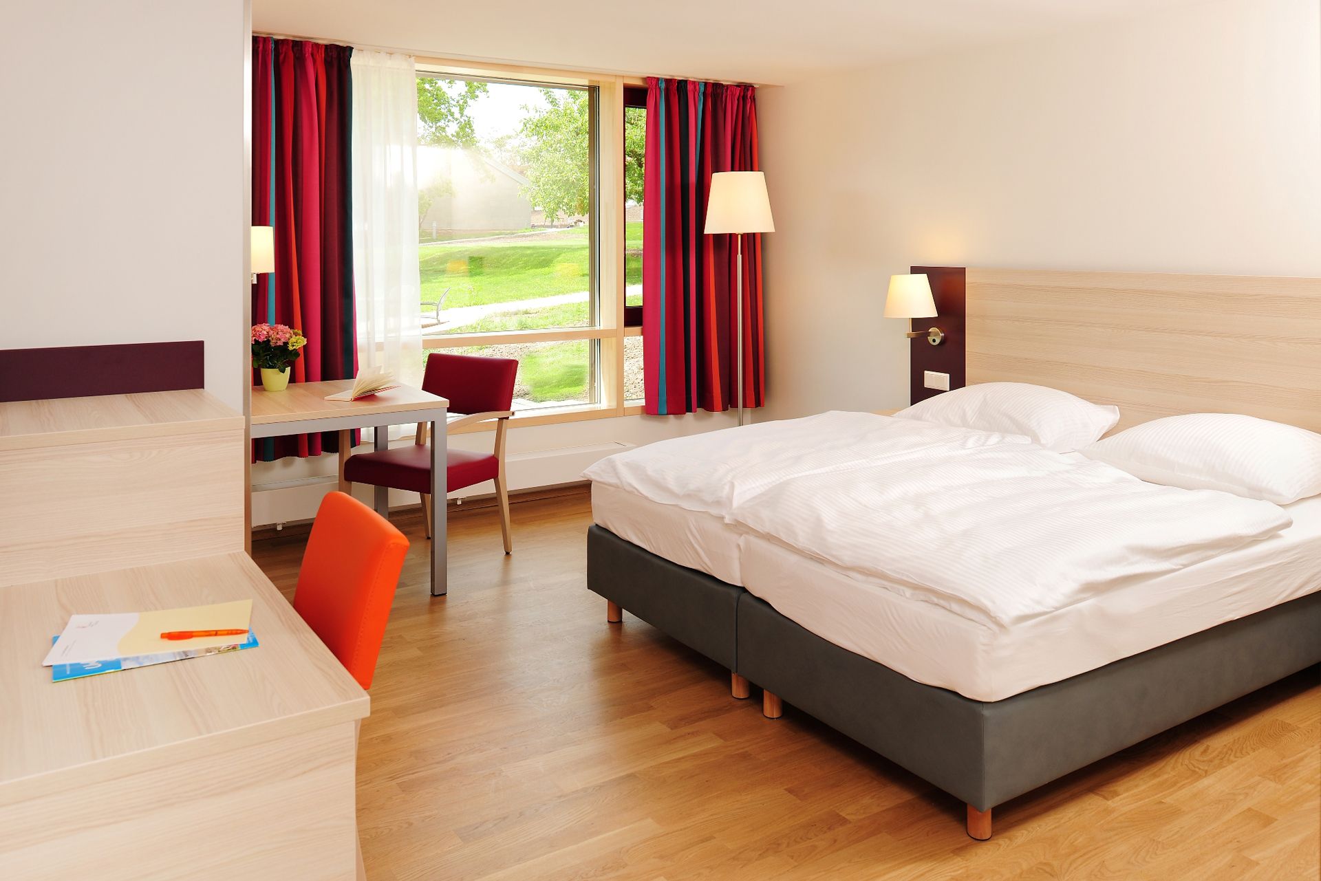 Für Erholung und Entspannung bieten wir 48 ruhige und gemütliche Zimmer, die sich in Gästehäusern auf unserem weitläufigen Außengelände verteilen. Darüber hinaus stehen 8 lichtdurchflutete Tagungs- und Aufenthaltsräume zur Verfügung - perfekte Orte für geschäftliche Treffen, produktives Arbeiten oder gesellige Beisammensein.
